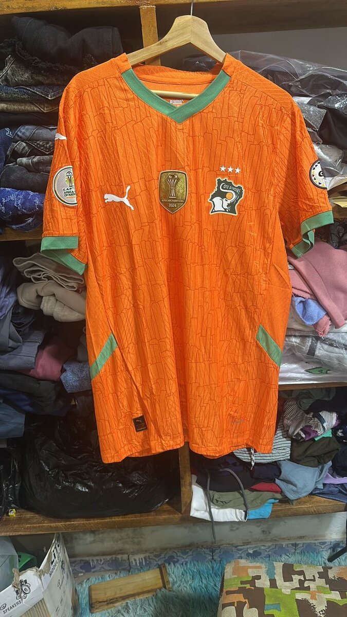 Maillot officiel de l'équipe de Côte d'Ivoire. Parfait pour les supporters et amateurs de football. Disponible en plusieurs couleurs. Confortable et respirant, idéal pour les matchs et l'entraînement.