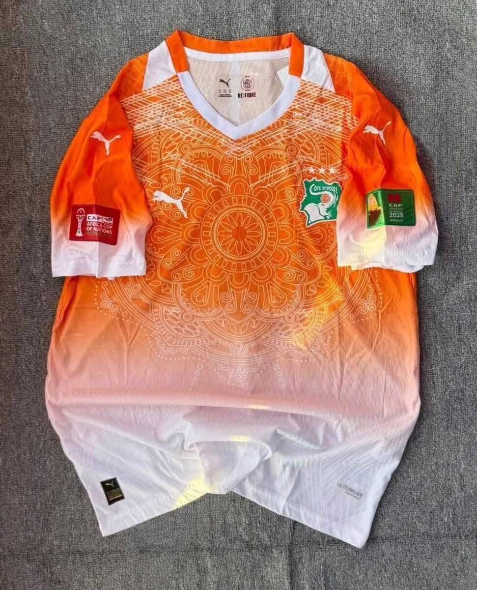 Maillot de football officiel de la Côte d'Ivoire, idéal pour les fans de sport. Fabriqué avec des matériaux respirants, parfait pour l'entraînement ou les matchs. Conception unique en orange et blanc avec détails mandala.