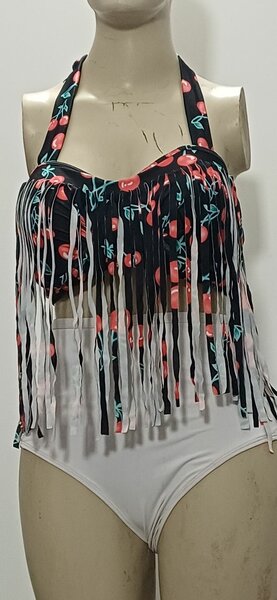 Maillot de bain une pièce bleu avec franges élégantes. Idéal pour un look de plage tendance et confortable. Ce design unique accentue la silhouette et offre un style chic. Parfait pour se démarquer lors de vacances en bord de mer ou à la piscine.