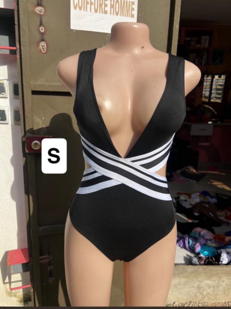 Découvrez notre élégant maillot de bain noir avec détails à rayures blanches croisées. Idéal pour les journées ensoleillées à la plage ou à la piscine. Conçu pour offrir un ajustement confortable et un style chic et moderne qui met en valeur la silhouette. Parfait pour les femmes cherchant à allier confort et sophistication.