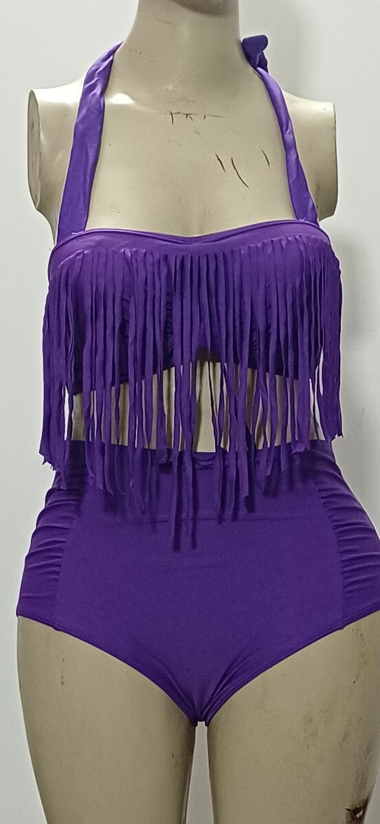 Élégant maillot de bain violet avec franges pour un style unique à la plage. Parfait pour un look estival tendance et confortable.