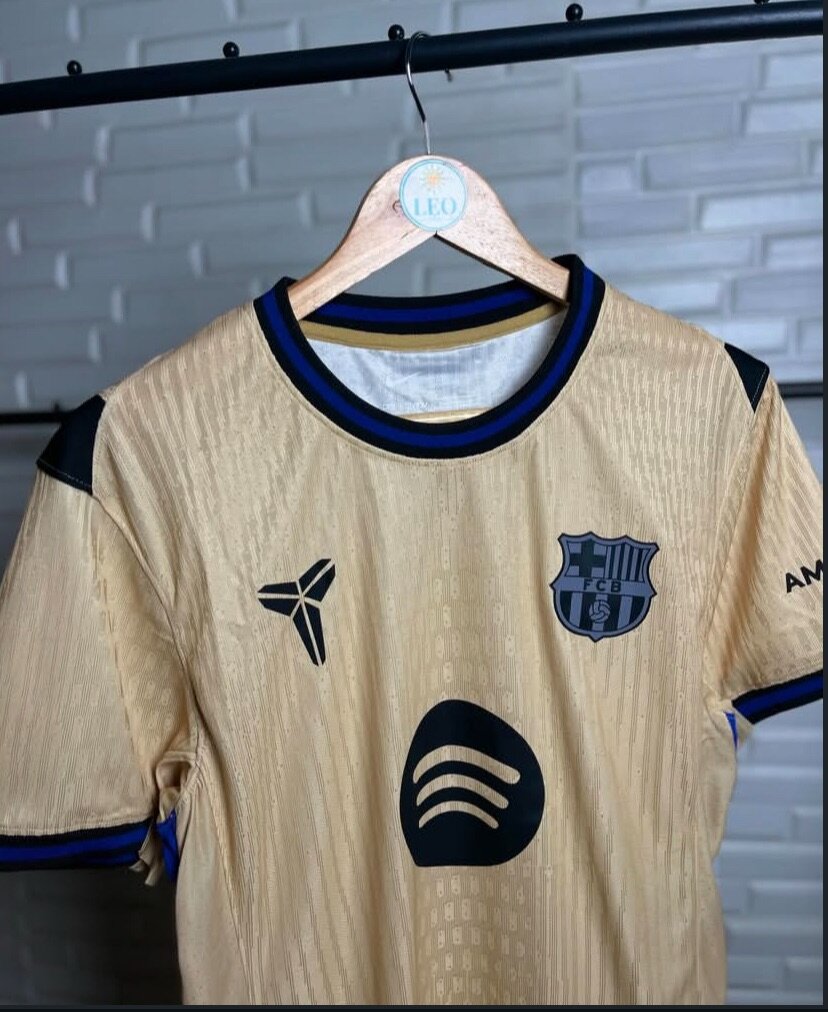 Maillot de football design doré pour supporters passionnés. Fabriqué en polyester respirant pour un confort optimal pendant les matchs et les entraînements. Style moderne avec logo et détails contrastés. Idéal pour les fans souhaitant afficher leur soutien avec style.