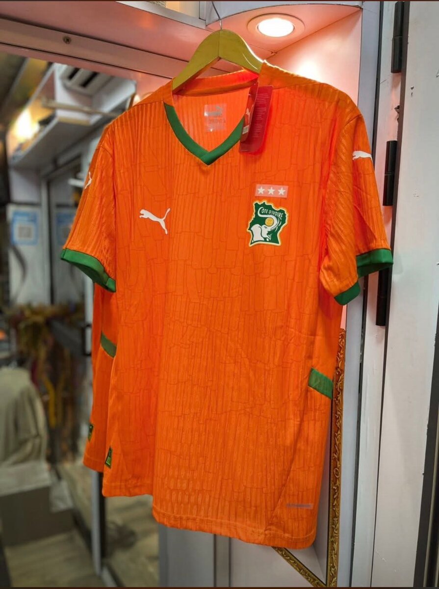 Maillot officiel de l'équipe de football de Côte d'Ivoire, parfait pour les supporters. Disponible en couleurs vibrantes avec logo de l'équipe et design moderne. Tissu respirant et coupe confortable, idéal pour les matchs et les entraînements.