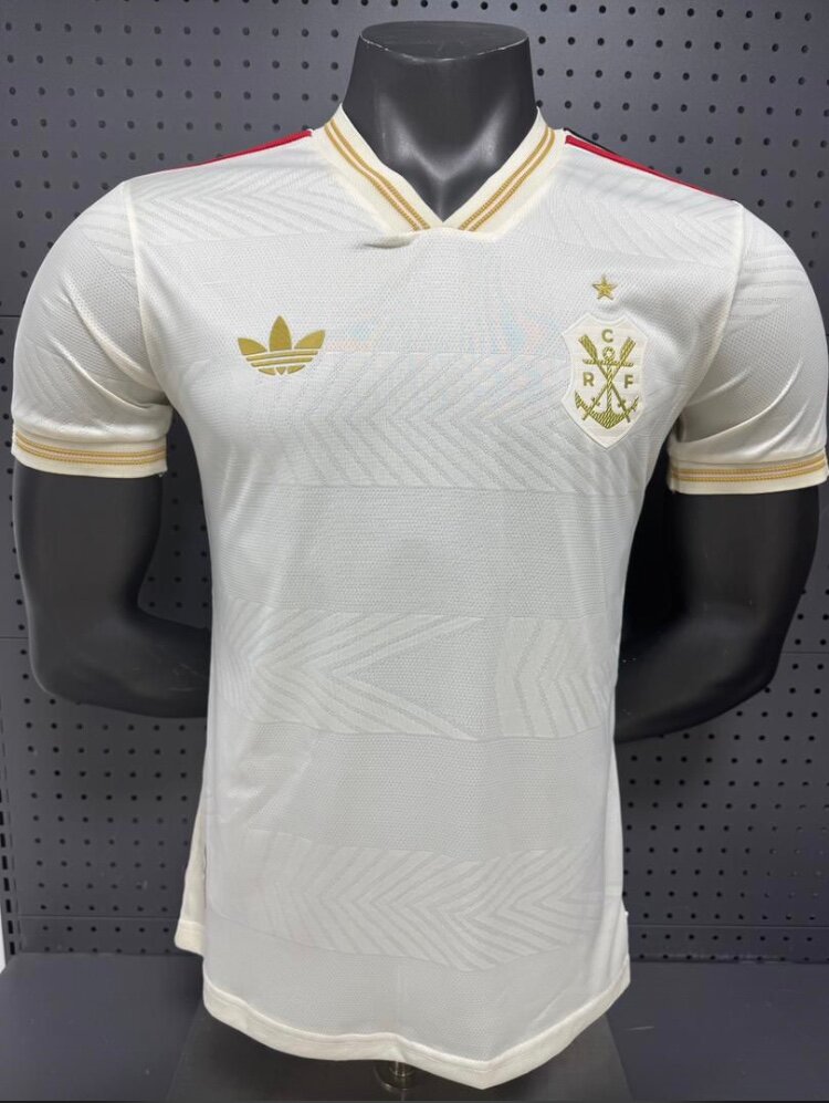 Élevez votre style sportif avec ce maillot de foot blanc et doré, arborant un design élégant et intemporel. Idéal pour les passionnés de football cherchant à marquer la différence sur le terrain comme en dehors. Tissu respirant pour un confort optimal et liberté de mouvement. Parfait pour les supporters ou à porter lors d'événements sportifs. Offrez une touche d'élégance à votre garde-robe sportive!