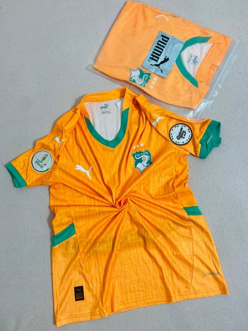 Maillot de football officiel de la Côte d'Ivoire par Puma. Conçu pour les fans, il est idéal pour porter au stade ou lors des matchs. Fabriqué en matériau respirant, il assure confort et performance. Parfait pour les passionnés de football.