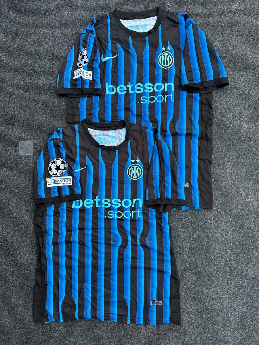 Découvrez notre maillot de foot Inter Milan avec rayures bleues et noires, idéal pour les fans de football. Fabriqué avec des matériaux de haute qualité pour le confort et la durabilité. Parfait pour soutenir votre équipe préférée lors des matchs ou pour un style sportif au quotidien. Disponible en différentes tailles pour adultes et enfants.