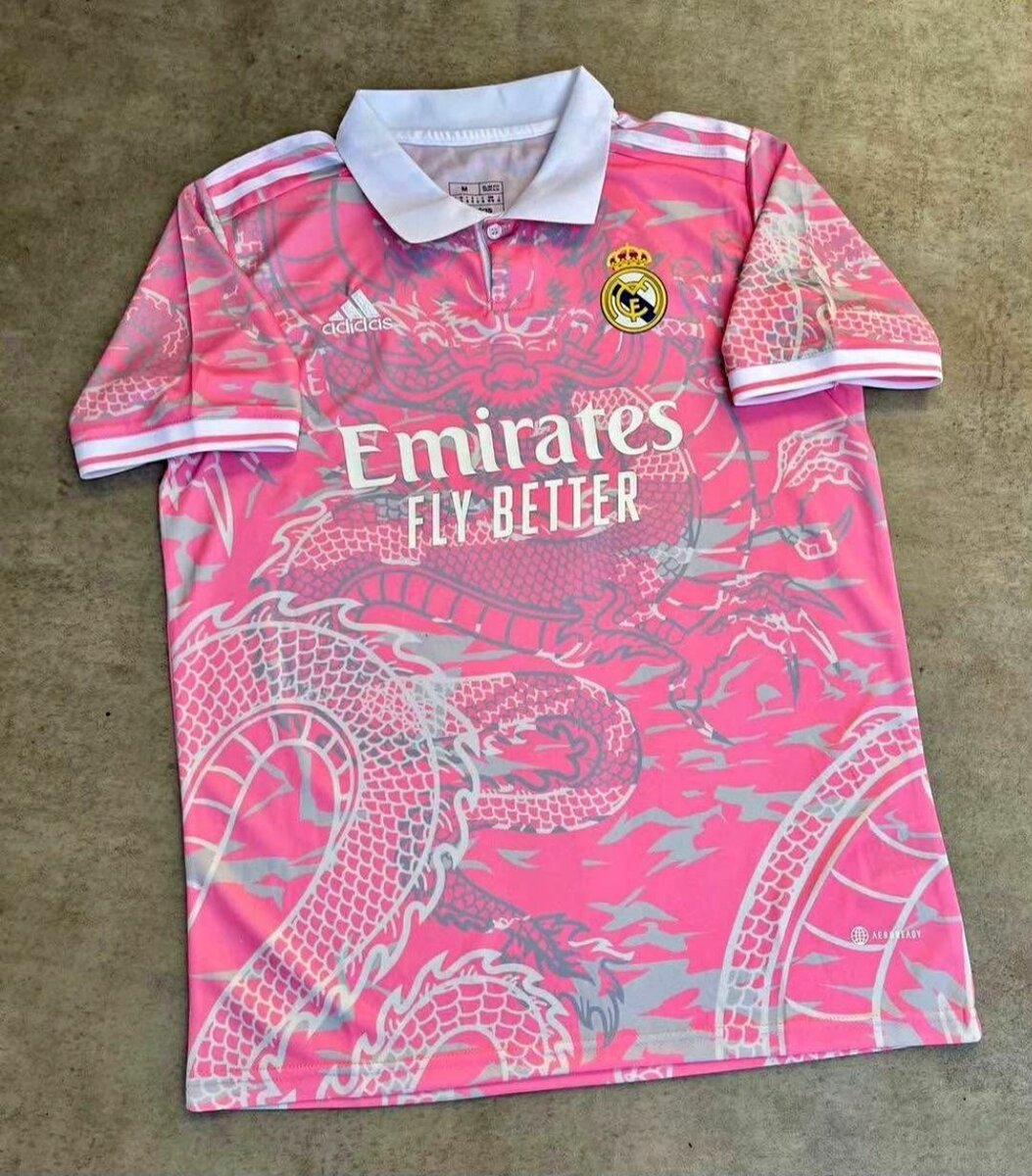 Ce maillot de football est un véritable attrait visuel avec son design de dragon audacieux sur fond rose. Fabriqué en polyester respirant, il offre confort et style pour les amateurs de sport. Idéal pour les matchs ou un look sportif chic. Portez-le pour soutenir votre équipe ou simplement pour afficher votre passion pour le football avec une touche unique.