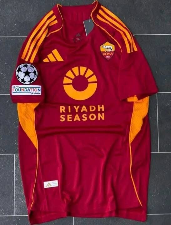 Maillot de football AS Rome saison 2023. Fabriqué en tissu respirant pour un confort optimal. Parfait pour les fans et les joueurs de football. Design authentique avec logo et couleurs officielles.