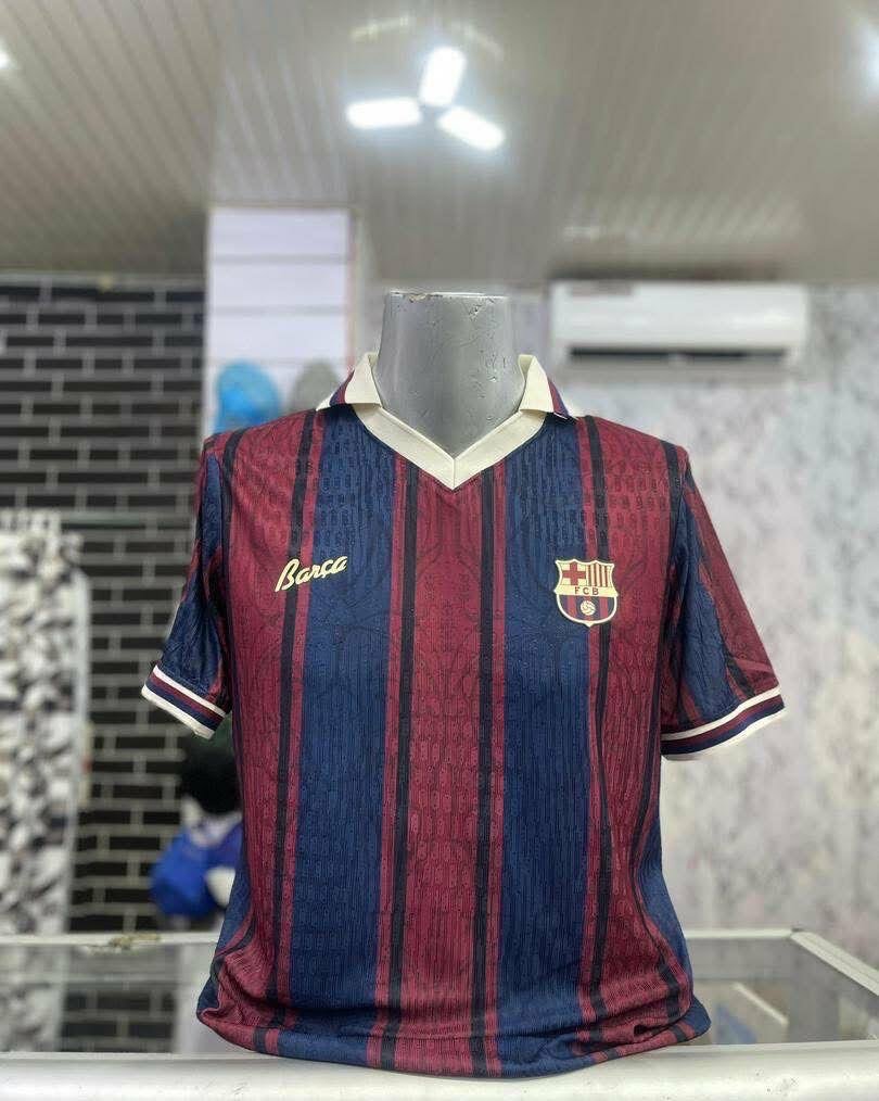 Découvrez ce maillot de football classique aux couleurs emblématiques de Barcelone. Parfait pour afficher votre passion lors des matchs ou en tenue décontractée. Fabriqué dans un matériau confortable et respirant, idéal pour les fans enthousiastes.