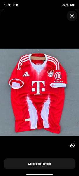 Maillot officiel du Bayern Munich, idéal pour les fans de football. Conçu en matériaux respirants pour un confort optimal. Parfait pour les matchs ou l'entraînement.
