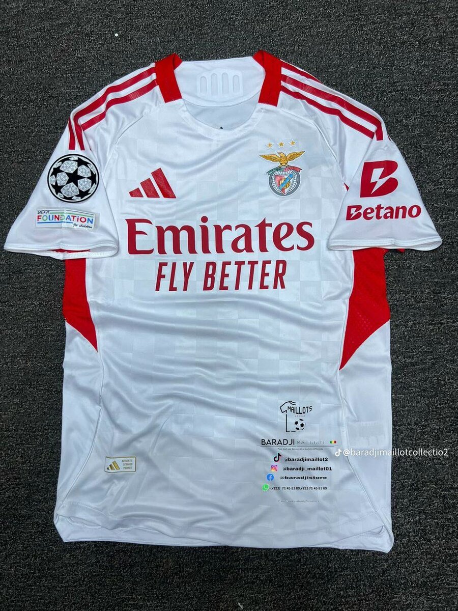 Découvrez le maillot de football officiel du Benfica, conçu avec soin pour les passionnés de sport. Fabriqué dans un tissu respirant et léger, il assure confort et performance sur le terrain. Arborez fièrement votre soutien à cette équipe légendaire lors de vos séances d'entraînement ou en matches amateurs. Un choix parfait pour les fans et collectionneurs !
