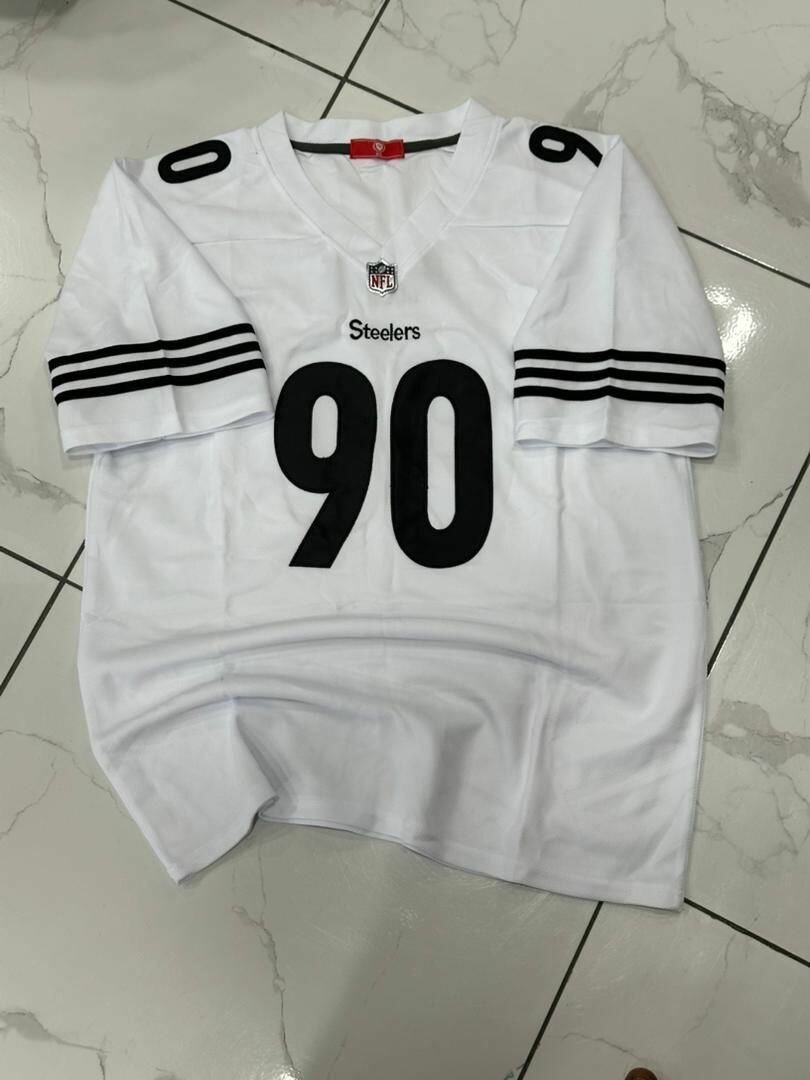 Ce maillot de football Steelers blanc arbore le numéro 90, parfait pour les fans inconditionnels. Fabriqué en matériau léger et respirant, il est idéal pour soutenir votre équipe préférée lors des matchs. Affichez votre passion pour le football avec style.