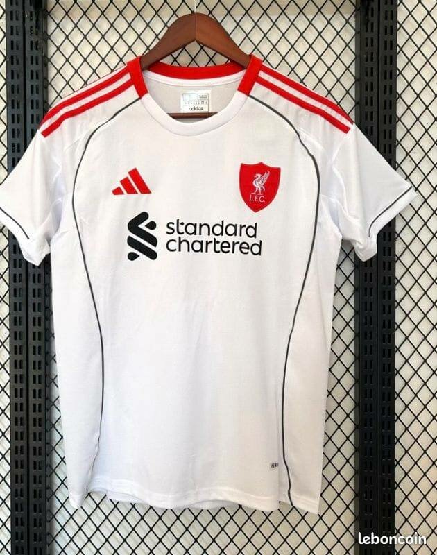 Découvrez ce maillot de football blanc avec des détails rouges, idéal pour les fans de sport. Confortable et stylé, parfait pour soutenir votre équipe préférée. Fait de matériaux de qualité, il assure durabilité et confort pendant le match. Un choix excellent pour les passionnés de football.