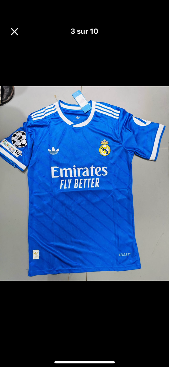 Maillot de football bleu stylé, idéal pour les fans de sport. Confortable et élégant, parfait pour les matchs ou les loisirs. Devenez un vrai supporter avec ce maillot emblématique.