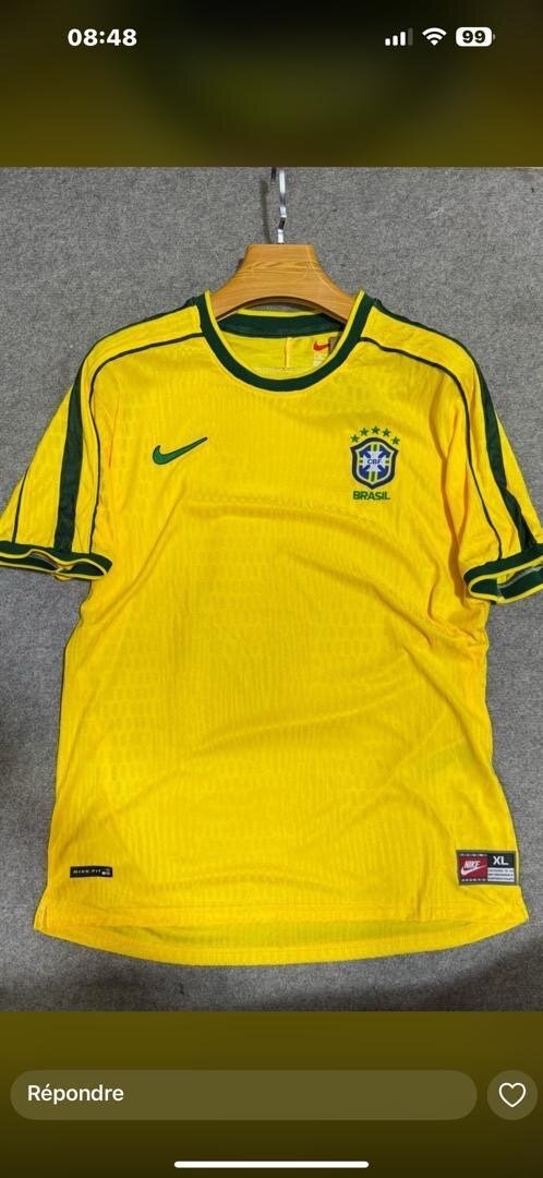 Maillot de football vintage du Brésil, idéal pour les fans et collectionneurs. Confortable et respirant, parfait pour le sport ou la détente. Affichez votre passion pour le football avec style.