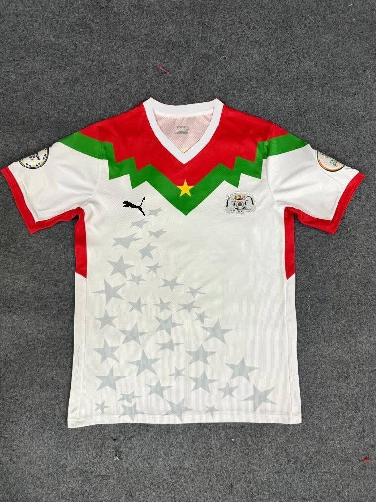 Maillot de football élégant du Burkina Faso, idéal pour les fans et amateurs de sport. Conçu en matériaux résistants, il offre confort et style pendant vos activités sportives ou les jours de match. Disponible en vert, jaune et blanc, avec des motifs étoilés distinctifs. Affichez votre soutien avec fierté!