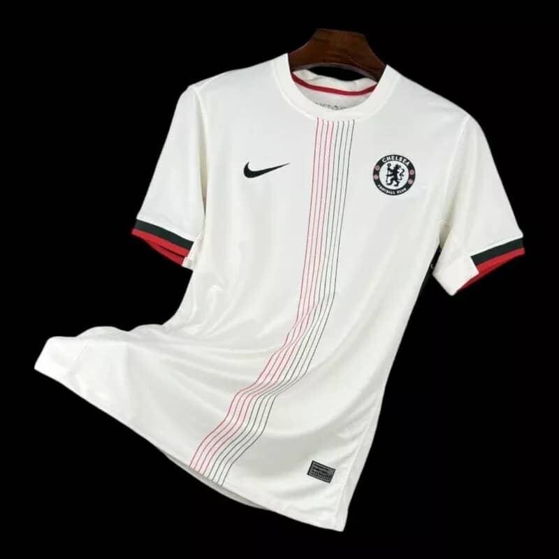 Découvrez le maillot de football blanc Chelsea. Conçu pour les amateurs de football, il offre un confort optimal grâce à ses matériaux légers et respirants. Parfait pour afficher votre soutien lors des matchs ou à l'entraînement. Portez-le avec fierté et style.