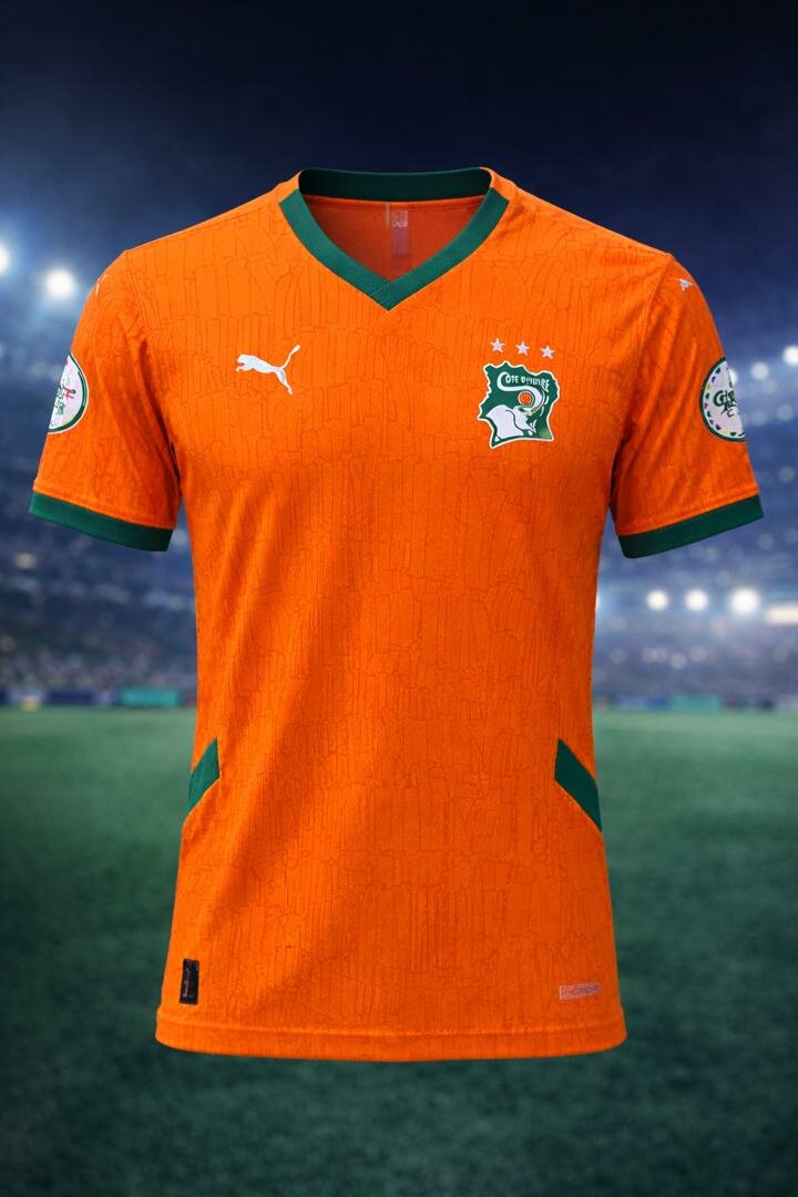 Maillot officiel de l'équipe de Côte d'Ivoire, idéal pour afficher votre soutien lors des matchs. Conception de haute qualité, respirant et confortable. Parfait pour les entraînements et les événements sportifs.