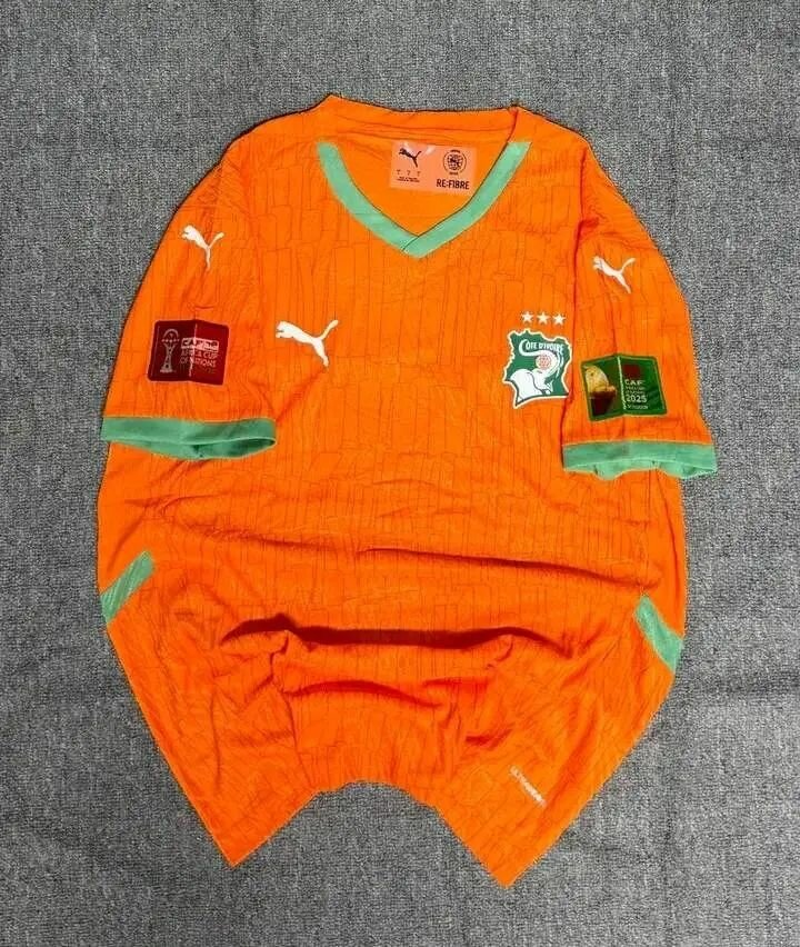 Maillot officiel de l'équipe nationale de Côte d'Ivoire, parfait pour les fans de football passionnés. Tissu respirant pour un confort maximal pendant les matchs. Arbore fièrement les couleurs vives de l'équipe avec des détails authentiques et les logos officiels.