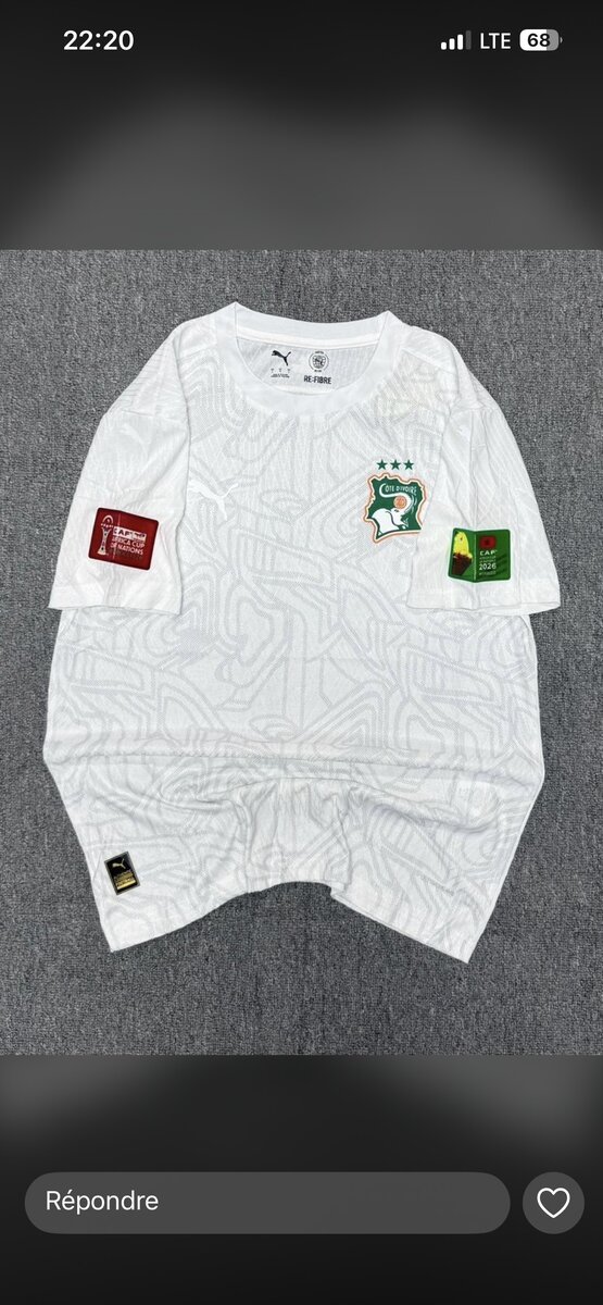 Découvrez le maillot officiel de l'équipe nationale de Côte d'Ivoire, conçu pour le confort et la performance. Fabriqué par Puma, ce maillot arbore un design moderne et aérodynamique. Parfait pour soutenir votre équipe lors des matchs ou à porter au quotidien pour un look sportif et tendance. Fabriqué avec des matériaux respirants pour un confort optimal. Idéal pour tous les fans de football et les collectionneurs de maillots.
