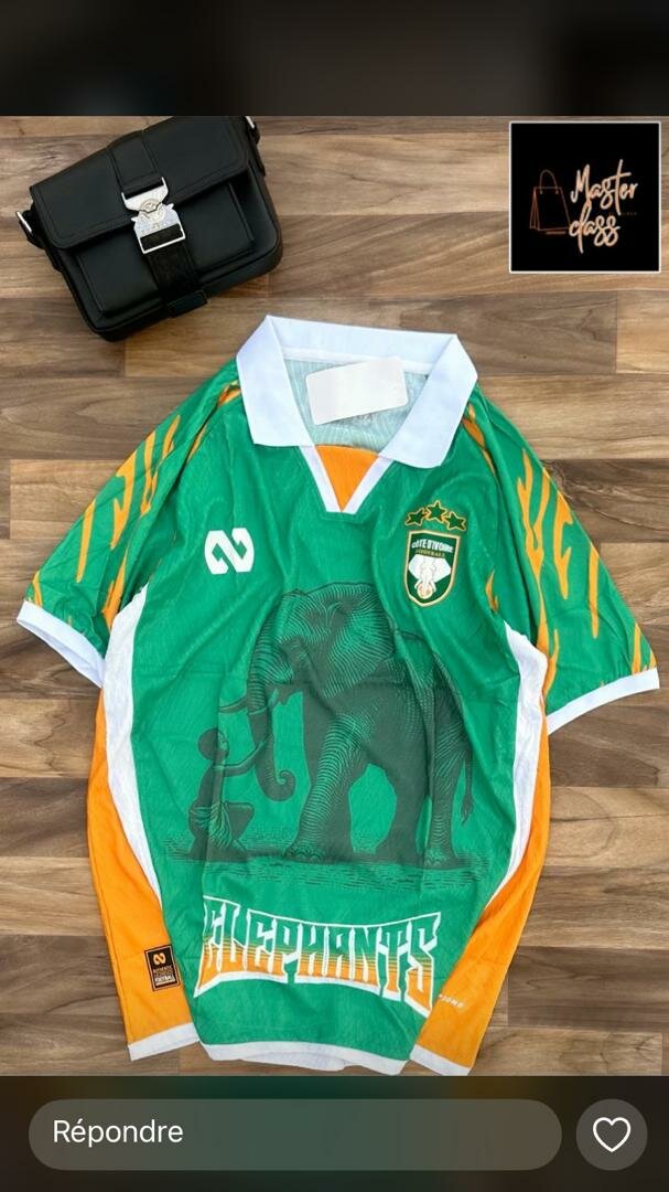 Maillot de football original avec motif d'éléphant. Confortable et respirant, idéal pour les fans de sport et les collectionneurs. Disponible en couleurs vives avec des détails uniques. À porter lors de matchs ou des sorties casual pour afficher votre passion.