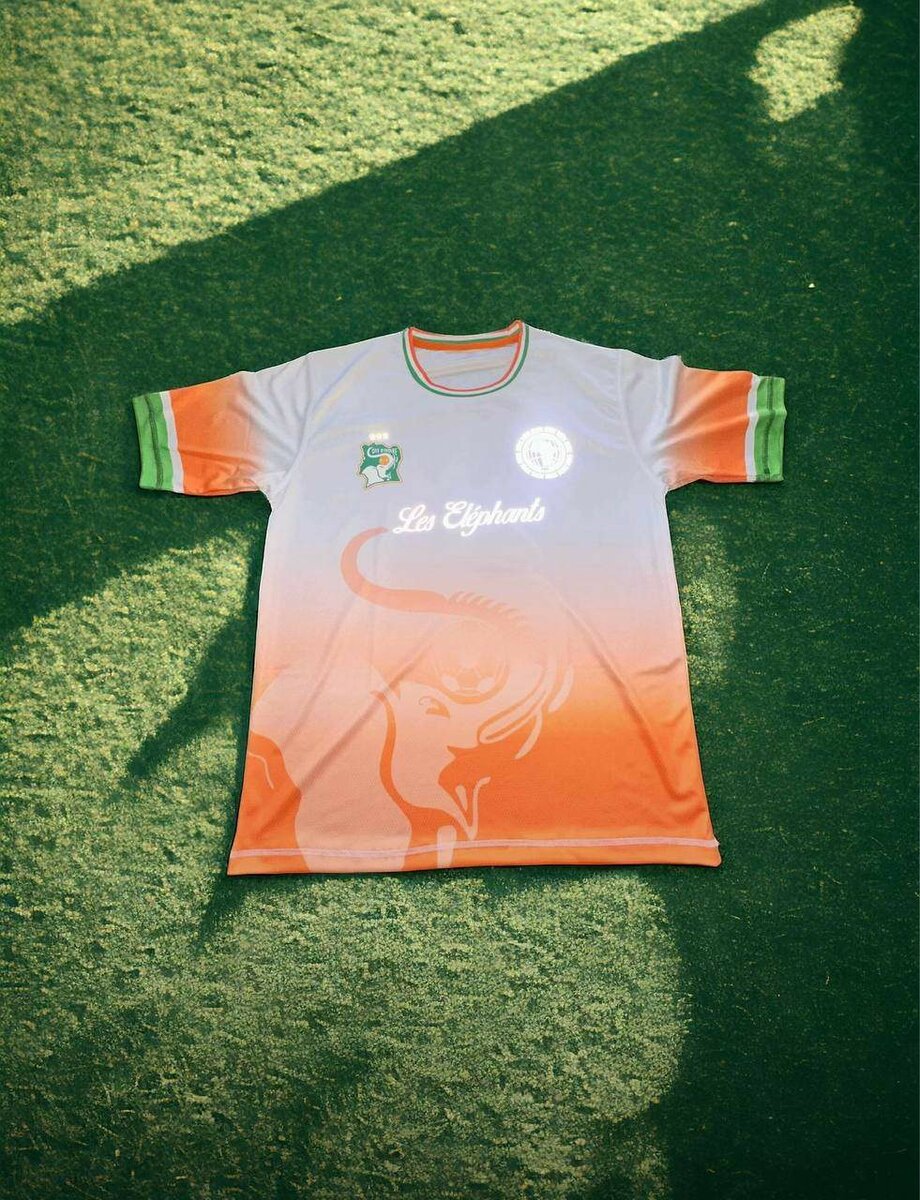 Découvrez ce maillot de football vibrant aux couleurs de l'équipe "Les Éléphants". Fabriqué en tissu respirant, il est parfait pour les passionnés de sport désirant soutenir fièrement leur équipe. Idéal pour les matches ou les loisirs.