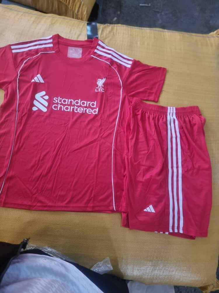 Supportez votre équipe favorite avec ce maillot de football du Liverpool FC, conçu pour le confort et le style. Idéal pour les matchs et l'entraînement, ce maillot respirant avec short assorti est parfait pour tout fan du football.