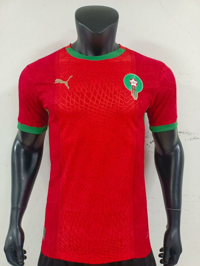 Maillot de football officiel du Maroc, parfait pour les supporters. Disponible en rouge et blanc, ce maillot allie confort et style. Affichez votre passion pour la Coupe du Monde avec classe !