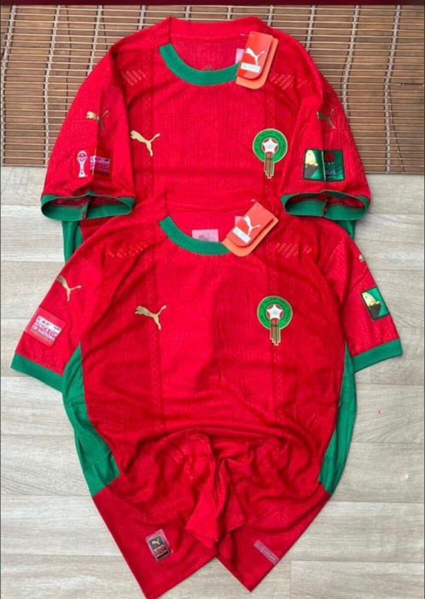 Découvrez ce maillot de football officiel du Maroc, parfait pour supporter l'équipe avec style. Fabriqué avec des matériaux de haute qualité pour un confort optimal lors des matchs ou des entraînements. Un choix idéal pour tout fan de football !