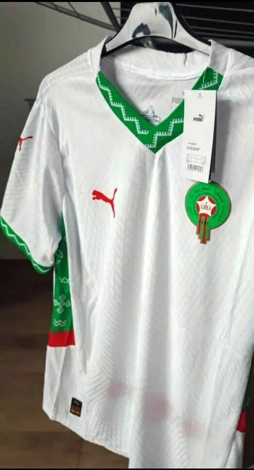 Maillot de football officiel du Maroc, parfait pour les fans et les collectionneurs. Fabriqué avec des matériaux de haute qualité, il offre confort et respirabilité. Idéal pour soutenir votre équipe lors des matchs ou à porter au quotidien.