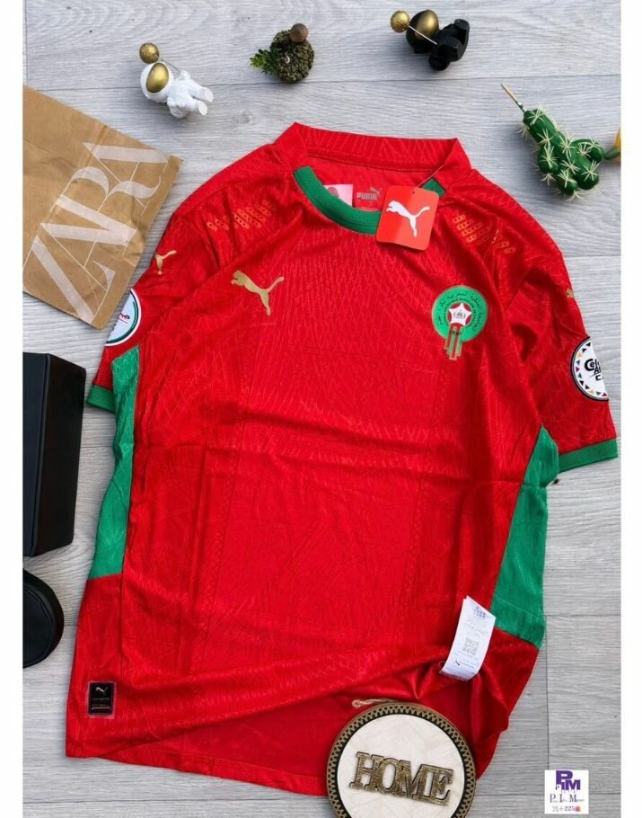 Maillot de football officiel du Maroc, idéal pour les fans et les supporters. Fabriqué à partir de matériaux de haute qualité pour un confort optimal. Disponible en blanc et rouge avec le logo de l'équipe nationale. Affichez votre soutien lors des matchs et des événements sportifs.