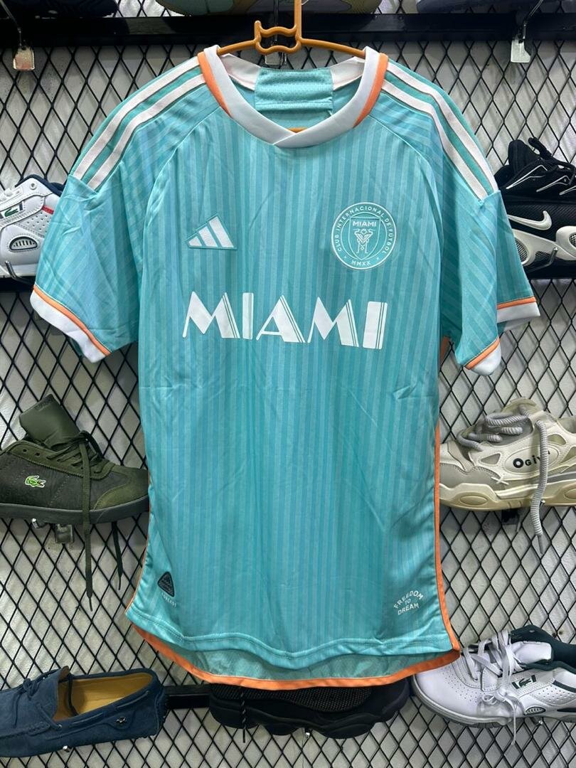 Maillot de football inspiré par Miami en couleur teal avec bordures contrastantes. Conçu pour un confort optimal grâce à un tissu respirant, idéal pour l'entraînement ou le style décontracté. Parfait pour les supporters et amateurs de sport. Taille unisexe disponible.