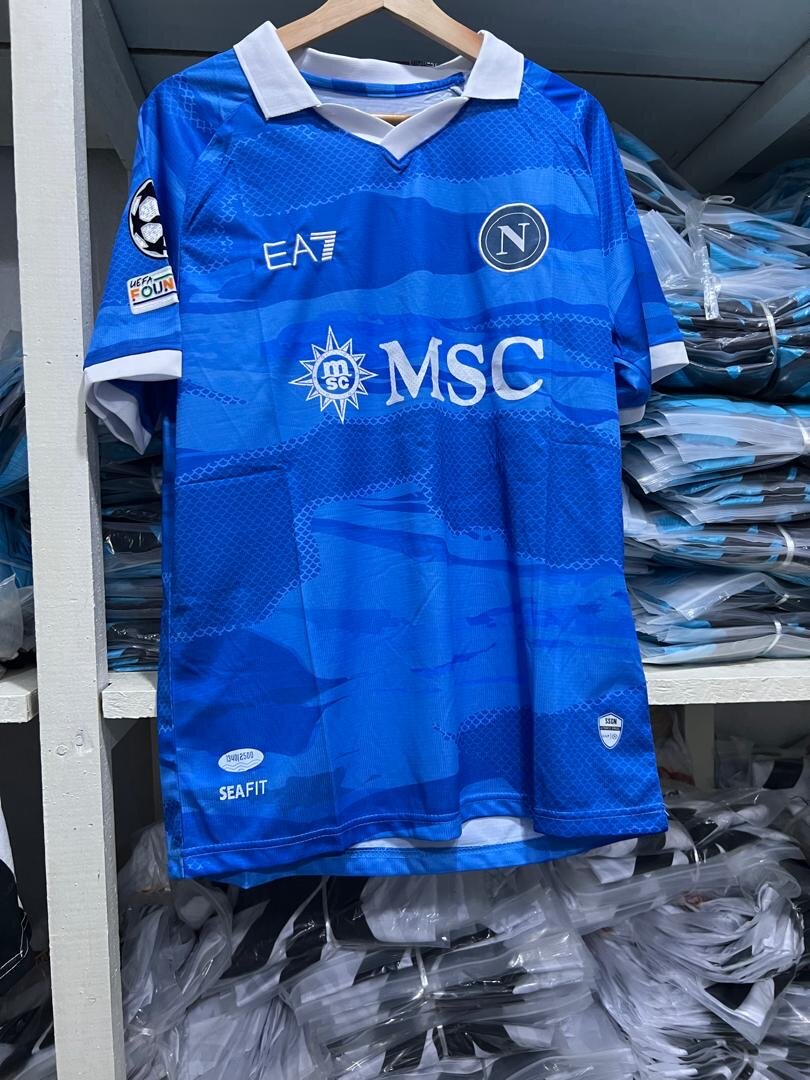 Portez les couleurs de votre équipe favorite avec ce maillot officiel de Napoli. Conçu pour le confort et la performance, il est parfait pour les matchs et l'entraînement. Affichez votre passion sur et en dehors du terrain.