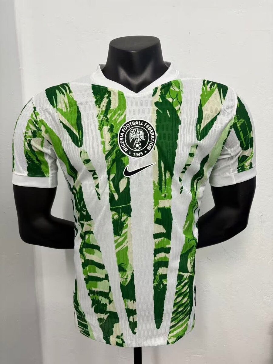Ce maillot de football moderne et stylé est parfait pour les fans de sport. Avec son design vert et blanc audacieux, il est idéal pour soutenir votre équipe préférée ou pour s'entraîner. Fabriqué avec des matériaux respirants pour un confort optimal, il assure une performance de haut niveau sur le terrain.