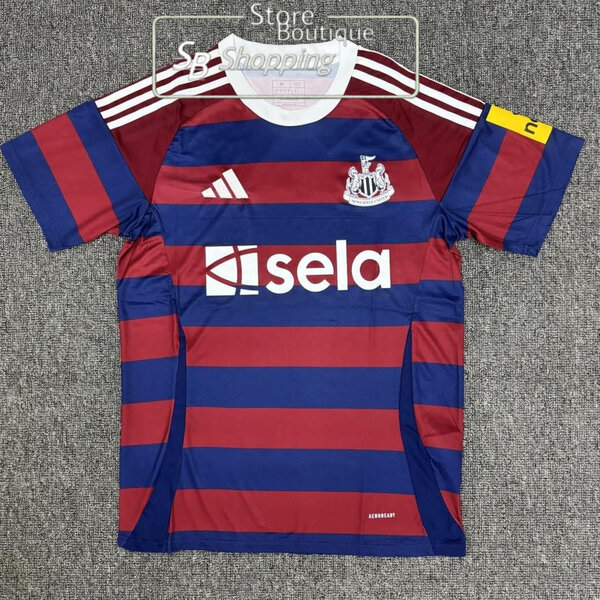 Découvrez ce maillot de football à rayures marines et bordeaux, idéal pour les amateurs de sport. Fabriqué en matériaux respirants, il assure confort et style sur le terrain comme en dehors. Parfait pour encourager votre équipe favorite ou pour pratiquer le football.