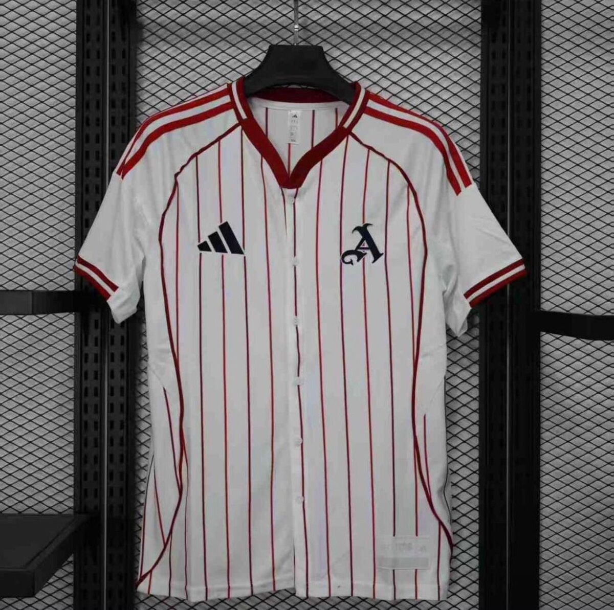 Découvrez notre maillot de football blanc avec des rayures rouges, parfait pour les fans de sport. Fabriqué avec des matériaux de haute qualité pour un confort optimal. Idéal pour les matchs ou les entraînements.
