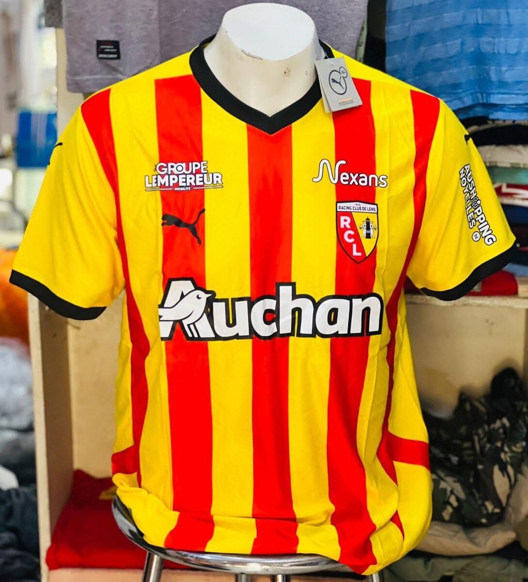 Maillot officiel du RC Lens, parfait pour les supporters passionnés. Design avec rayures rouges et jaunes emblématiques et logo du club. Confortable pour porter lors des matchs ou au quotidien. Un incontournable pour tout fan du RC Lens.