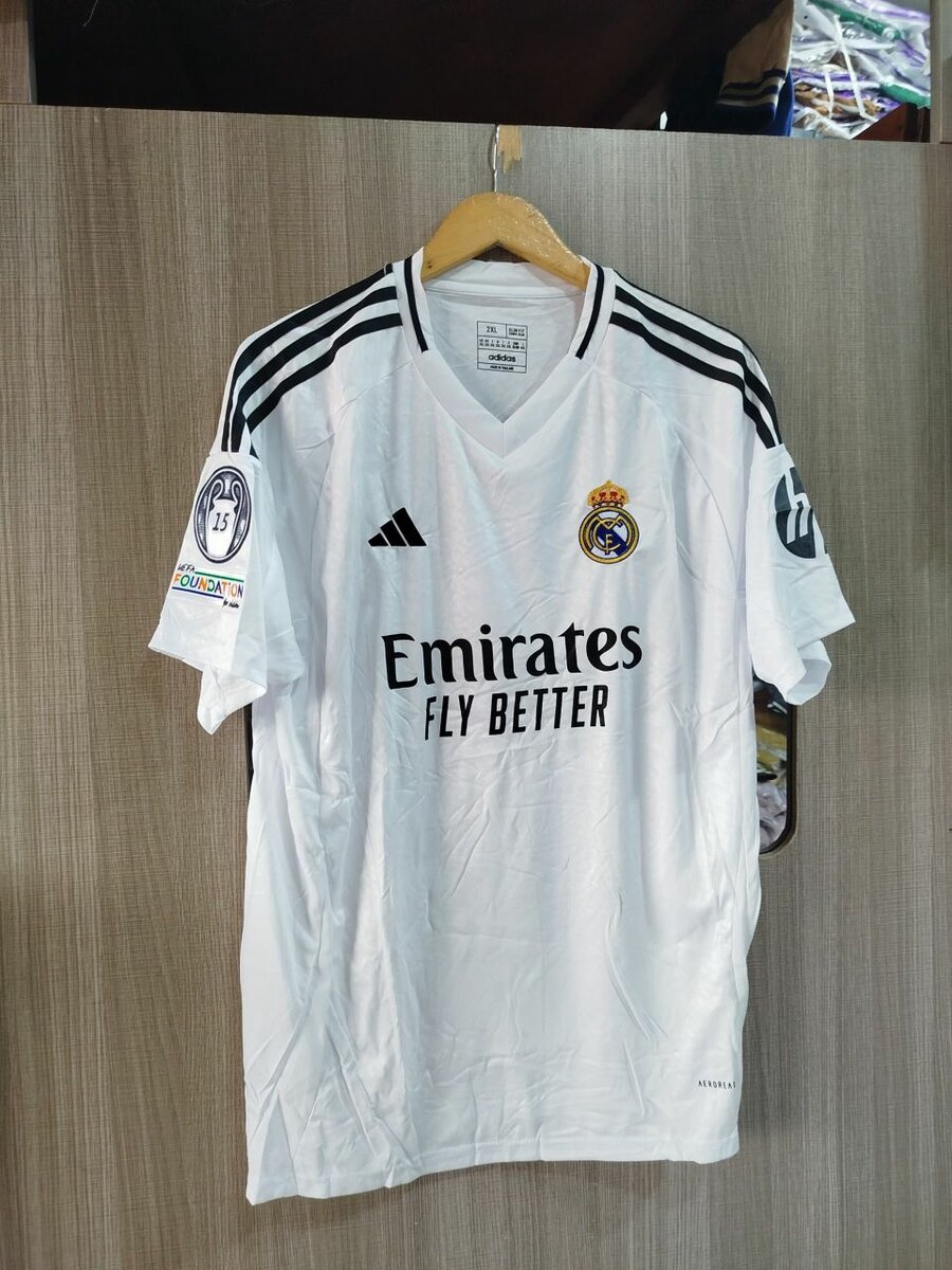 Maillot de football officiel du Real Madrid pour les passionnés. Confortable et respirant, idéal pour le sport et le supporter. Affichez votre soutien pour l'équipe avec style.