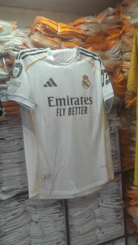 Maillot de football Real Madrid authentique, idéal pour les fans et les collectionneurs. Fabriqué avec des matériaux de haute qualité pour un confort optimal pendant le match. Parfait pour les entraînements, les matchs ou les loisirs. Offrez-vous la classe et l'élégance d'un grand club de football.