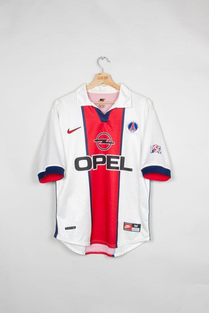 Découvrez ce maillot de football rétro du PSG, un incontournable pour les vrais fans. Cet élégant maillot blanc avec design rouge et bleu est parfait pour afficher votre soutien à votre équipe préférée. Idéal pour les collections ou les matchs de foot.