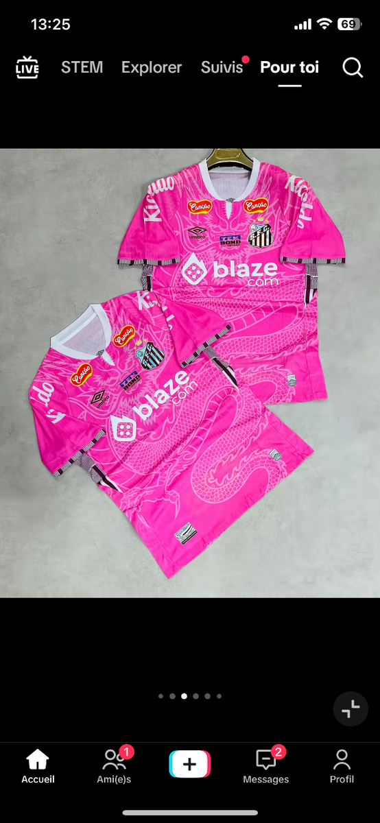 Découvrez ce maillot de football vibrant en rose et noir, parfait pour les fans et les joueurs. Fabriqué avec des matériaux de haute qualité pour un confort optimal sur le terrain. Idéal pour les matchs ou l'entraînement. Faites sensation avec ce design unique qui attire les regards.