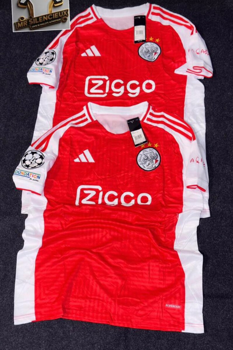 Maillot de football rouge et blanc avec logos et détails distinctifs. Confortable et idéal pour les fans de football, parfait pour afficher votre soutien lors des matchs.