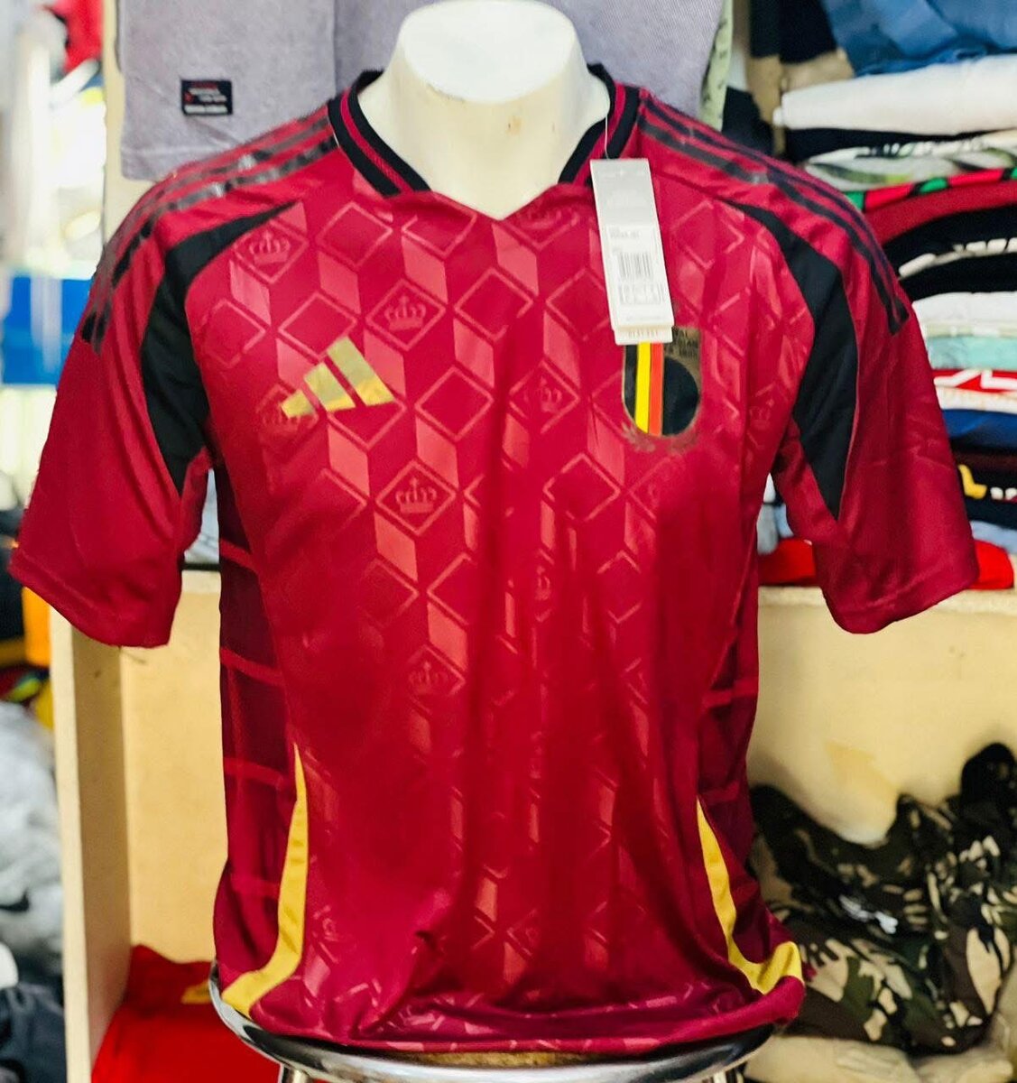 Maillot de football rouge pour homme, idéal pour les fans de sport. Confortable et respirant, parfait pour les matches ou les entraînements. Design moderne avec des détails élégants. Offre une grande liberté de mouvement et un style unique sur le terrain.