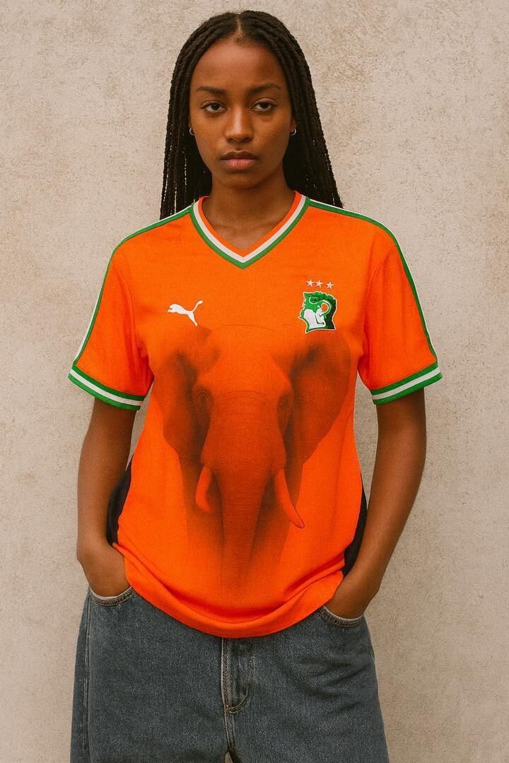 Montrez votre soutien avec ce maillot de Côte d'Ivoire, orné d'un emblème d'éléphant et de couleurs vives. Parfait pour les fans de football qui veulent se démarquer. Disponible en couleur verte et orange. Idéal pour les matchs ou la tenue décontractée.