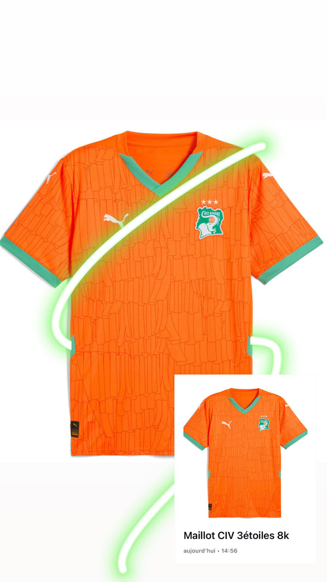 Supportez votre équipe avec ce maillot officiel de la Côte d'Ivoire. Confortable et stylé, parfait pour les matchs et les entraînements. Son tissu respirant et sa coupe ergonomique font de ce maillot l'allié idéal des passionnés de foot.