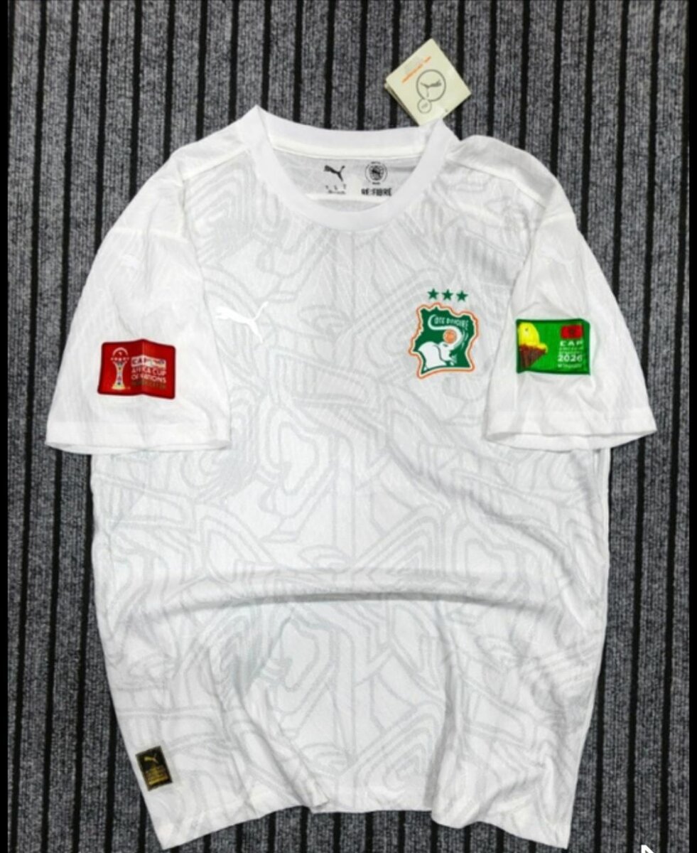 Maillot officiel de l'équipe de Côte d'Ivoire, parfait pour les fans de football. Fabriqué avec des matériaux de haute qualité pour un confort optimal lors des matchs ou des entraînements.
