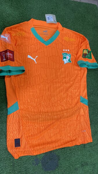 Maillot officiel de l'équipe nationale de football de Côte d'Ivoire, idéal pour les fans et les collectionneurs. Conçu avec des matériaux de haute qualité pour le confort et la durabilité.