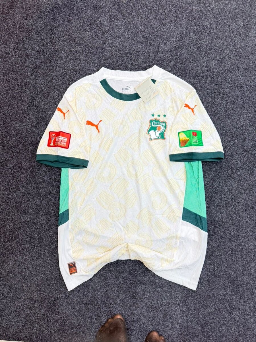 Maillot officiel de l'équipe de Côte d'Ivoire, fabriqué avec des matériaux de haute qualité pour un confort optimal. Parfait pour les supporters passionnés et les sportifs.