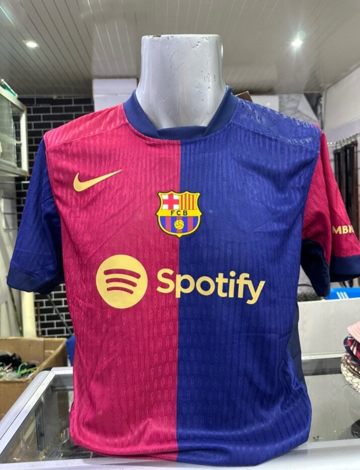 Maillot domicile FC Barcelone 2023/24, idéal pour les fans. Design unique avec logo Nike et sponsor Spotify. Confort et style pour tous vos matchs!
