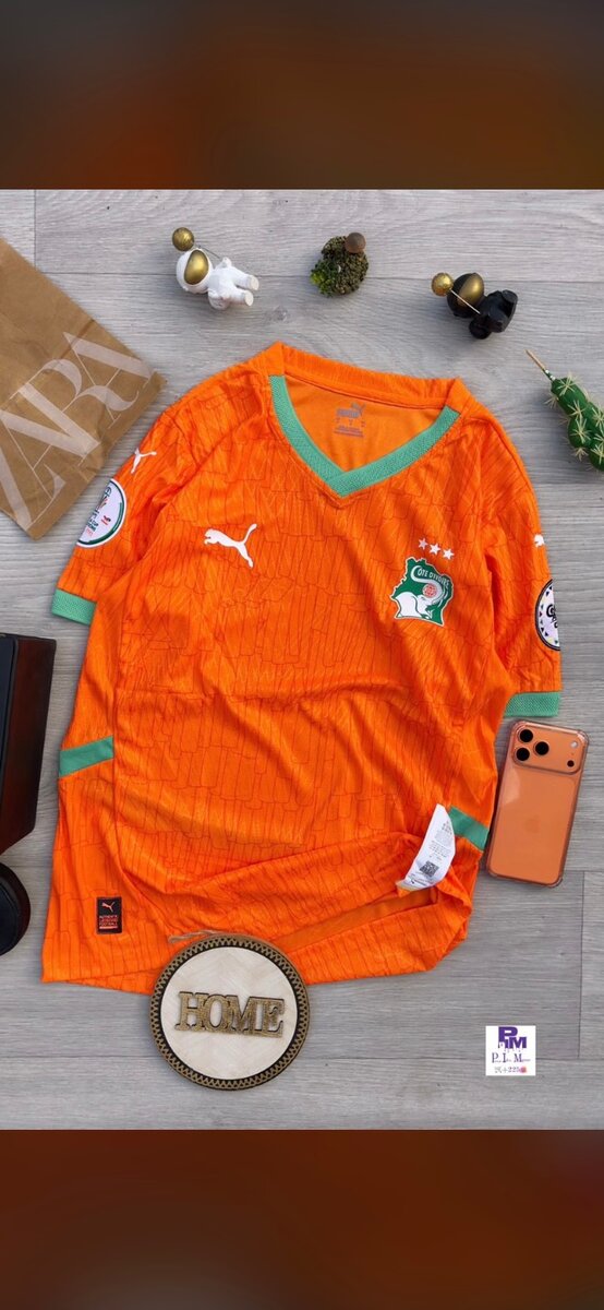 Maillot de football officiel de l'équipe nationale de Côte d'Ivoire. Idéal pour les supporters passionnés, conçu avec un matériau respirant pour un confort optimal pendant le jeu ou les matchs. Parfait pour afficher votre soutien lors des grandes compétitions.